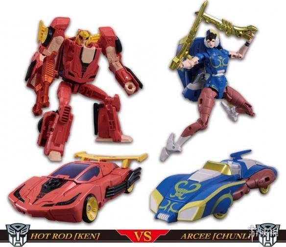 在配色和造型上,《街霸》版的变形金刚尽可能做到了还原,隆的红色发带、春丽的蓝色旗袍和包包头。