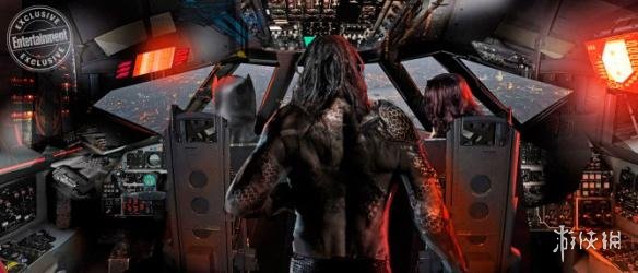 驾驶舱中的蝙蝠侠和神奇女侠,还有海王健硕的后背,但这一场景没有出现在电影之中。