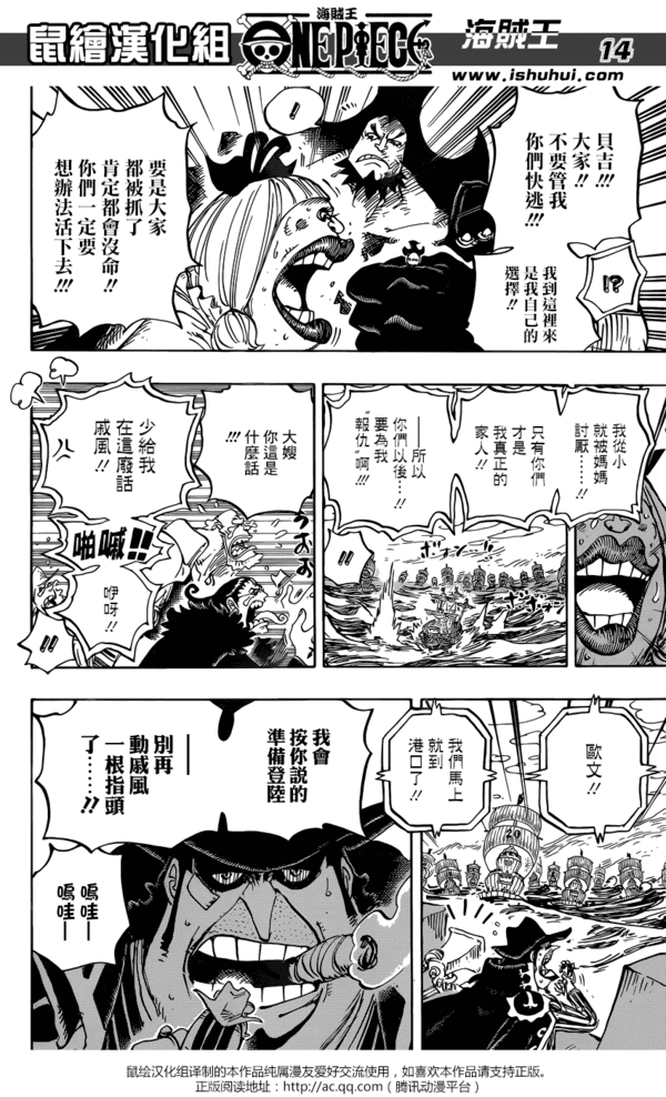 《海贼王》漫画886话汉化版已正式放出,经过努力布琳等人终于做好了结婚蛋糕,准备去寻找大妈。此时欧文却赶到巧克力岛,要抓戚风。山治不能公开救人,危急时刻他还是在暗中救下了戚风。但是最终戚风还是被欧文抓到,并且以此要挟贝基投降。另一边路飞在逃跑途中不断思索如何才能提升自己的战力,他想要和使出全力的卡塔库栗对战。