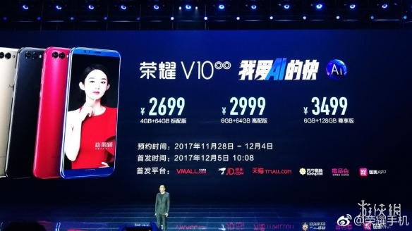 售价方面,4GB+64GB售价2699元,6GB+64GB售价2999元,6GB+128GB版售价3499元。11月28日——12月4日为预约时间,12月5日10点08分将于官方商城、天猫、京东、苏宁易购、唯品会、国美等平台首发。