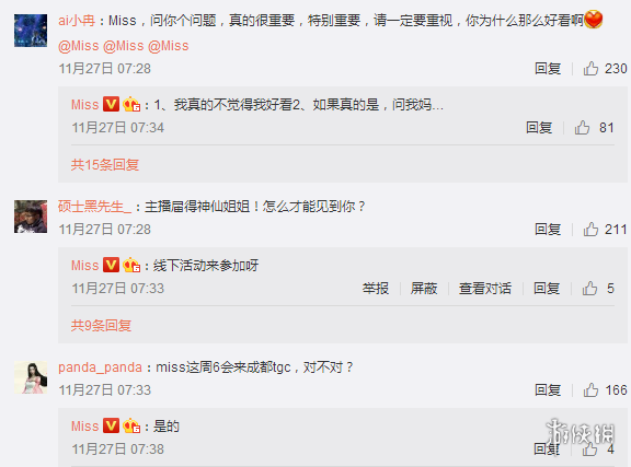 昨日,这位知名电竞美女深夜失眠,在微博上发起了互动称:只要不过分,尽量回答粉丝们的所有问题。Miss花了大概一个小时的时间来回答各种问题,说了不少值得“八卦”的内容!