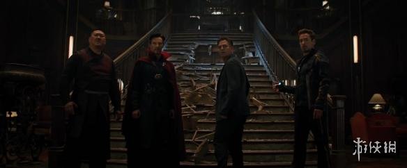 在经典的漫威影业LOGO演绎之后,我们看到王、奇异博士、布鲁斯·班纳和托尼·斯塔克齐聚纽约圣所,身后的楼梯上还有一个大窟窿,显然是之前从天而降的浩克造成的。而我们知道班纳去了瓦坎达,因此这个纽约的桥段应该在瓦坎达之前。
