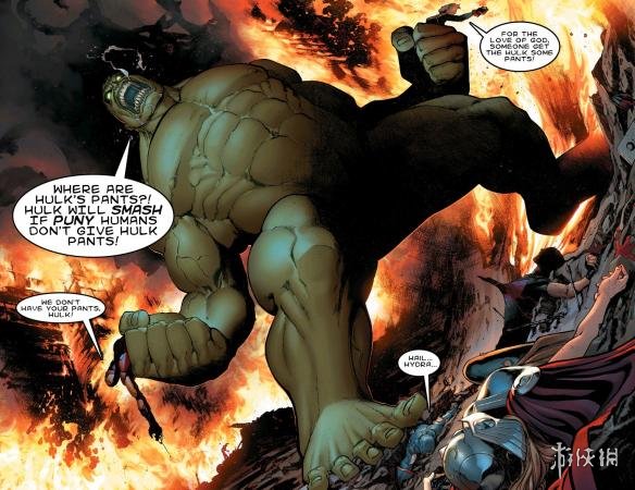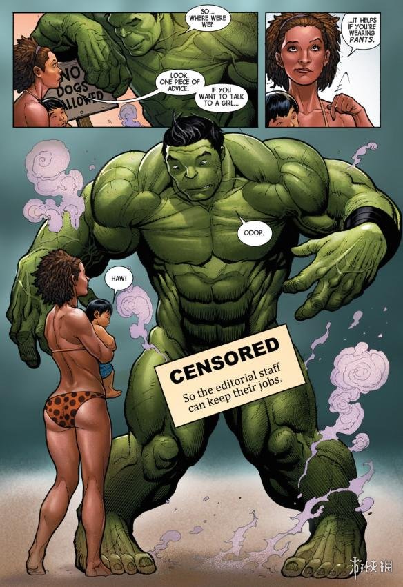 原版“世界大战浩克”漫画图、布鲁斯班纳的浩克正在萨卡星自己的寝宫享受服侍