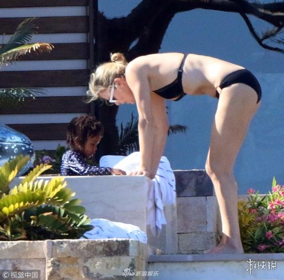 42岁影后查理兹-塞隆(Charlize Theron)与养女、养子海边度假共度感恩节。她身穿黑色比基尼大秀身材,已经42岁的她依旧有胸有腿,身材保持很好。