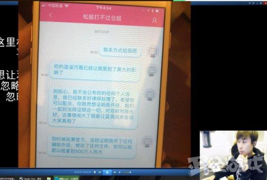 最后五五还表示,他已经和UP主私信过了,并且将私信内容放到直播上。他希望UP主能和他上法庭对质,如果UP主胜诉了,他将给UP主道歉,赔偿500万,并且退出直播界不再直播;如果他胜诉了,他希望UP主删除质疑视频,并且给他本人道歉,只需赔偿损失费1元。
