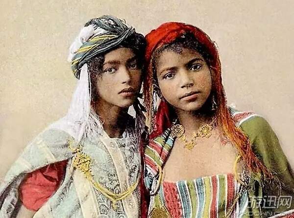 阿尔及利亚的一对姐妹花,面庞看起来有一点黝黑,但也不失野性美。