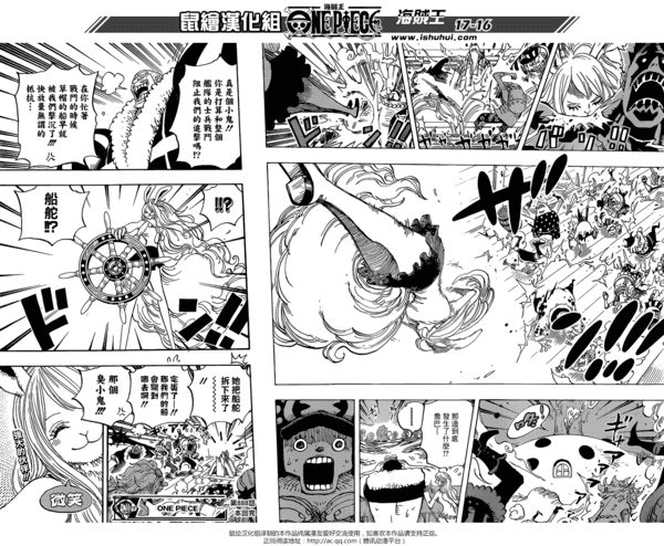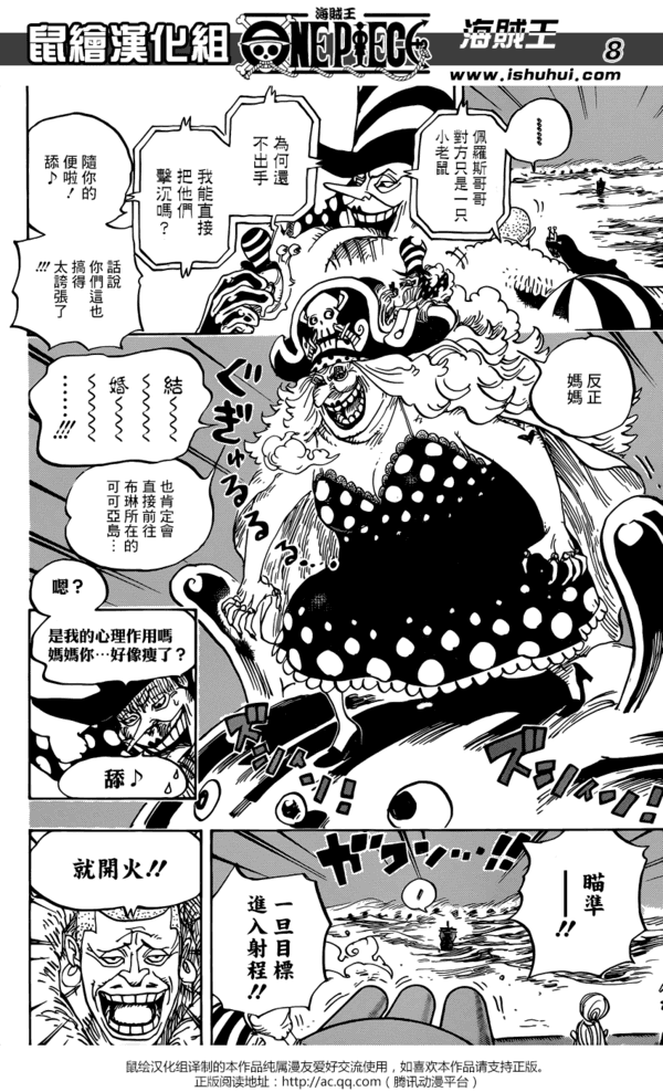 《海贼王》漫画888话汉化版已经公开,娜美、甚平所乘坐的桑尼号遭到了大妈海贼团的两面夹击,虽然大妈目前还没有恢复神智,无法控制炮弹,但是光凭舰队的数量桑尼号就很难逃脱,大福、斯慕吉他们也都赶到了。乔巴打算变大去大闹一场,然后大家借机会逃脱,这时候兔妹子加洛特主动请战,要让大家看看毛皮族真正的样子。