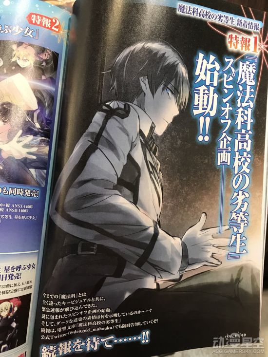 从杂志页来看,本次《魔法科高校的劣等生》将要推出的新企划为外传(spin off)性质,正如官方在左下角标注的那样“被谜团包围的紧急速报”。而在石田可奈绘制的这张插图上,司波达也用眼角睥睨着画面,充满了高冷霸气的特质。