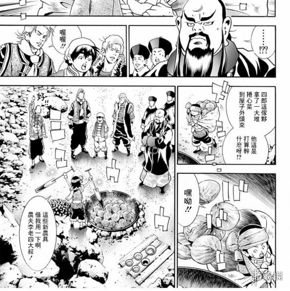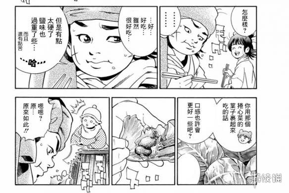 在捣碎的卷心菜中居然内嵌着猪肉,四郎用先蒸然后爆炒的方式制作出了“重层回锅肉”,这道菜味道鲜美,口感柔软,直接让守城官员好吃到脱胎换骨的感觉。这次四郎终于凭借自己制作出好吃的料理,话说在生的卷心菜中嵌入猪肉和豆腐然后还能保持卷心菜的完整这点真是够可以,在这里做菜的方法果然是没有做不到只有想不到啊。