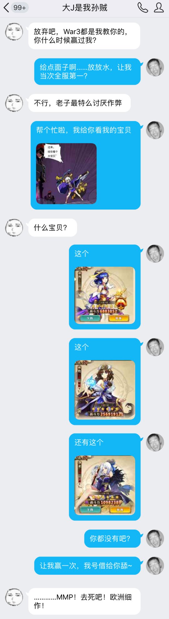 一定是我的英雄不够强力,绝对不是我操作的锅!待我去跟大J神要来账号再战一场,就不信赢不了你!