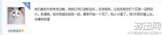 五五开说希望当事人打个区第一证明当事人的实力,他会帮当事人推荐职业队,结果当事人不分昼夜的上分,5天内帮五五开从砖石打到50星,却被五五开嫌弃太慢了。
