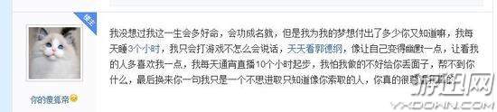 以下为当事人原话:我真想问问,那个时候王者荣耀那么火,我那个时候每个赛季都是百星王者区第一,S4时候打了370星,我没遇到你卢某人,或者我还是个代打,但是我一个月收入能有最少1万起步,或者去打职业也许拿到了好的成就。但是遇到你,你给我梦想的希望,一次次让我经历希望绝望,你知道嘛,人这一生有希望真的是好事,但是你知道这辈子最痛苦的事是什么嘛,一个人给了你希望亲手让你绝望,还在你伤口上撒盐,我就想问问你,你的心真的跟我一样是肉做的嘛?我没想过我这一生会多好命,会功成名就,但是我为我的梦想付出了多少你又知道嘛,我每天睡3个小时,我只会打游戏不怎么会说话,天天看郭德纲,像让自己变得幽默一点,让看我的人多喜欢我一点,我每天通宵直播10个小时起步,我怕我做的不好给你丢面子,帮不到你什么,最后换来你一句我只是一个不思进取只知道像你索取的人,你真的很尊重我真的。