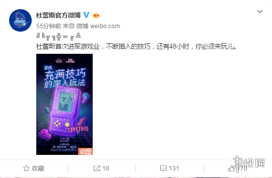 今天中午,杜蕾斯官方微博突然宣布:杜蕾斯首次进军游戏业!从官方放出的两张预热海报中,我们能够看到老一代掌机及《俄罗斯方块》《超级玛丽》等经典童年游戏。