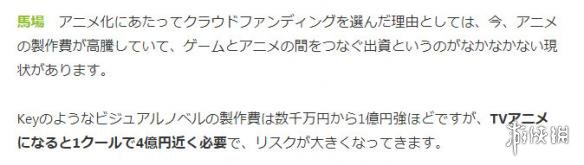 这是他在接受采访的时候透露的信息。他指出目前动画的制作费正在暴涨,一个季度的TV动画差不多需要耗费4亿日元的样子,因此制作风险也就变得更高了。