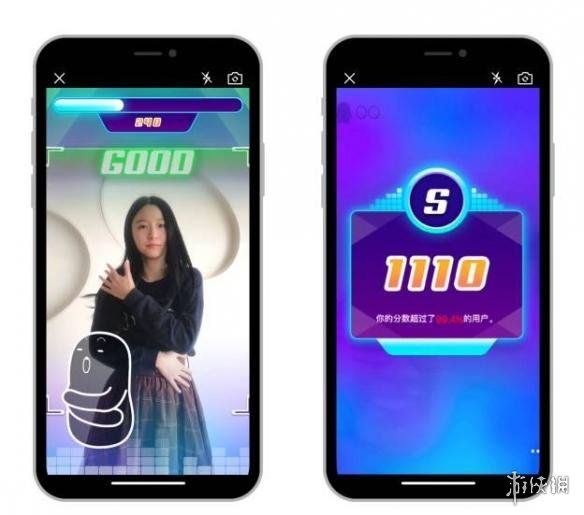 游戏界面如下,会有相应的舞蹈指示,AI会对动作进行评判并打分。只要你根据屏幕上的动作提示做出相应动作,系统就会根据动作契合程度出现比如“great”、“good”、“miss”等提示,完成录制后会得到相应的分数。
