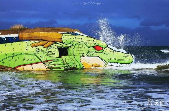 这座废弃碉堡常年来一直被废弃在海滩上,从侧面看去这个梯形很像神龙的头部,于是两位艺术家便借助绳索、梯子等各种工具,并耗费了很多染料将碉堡灰蒙蒙的外表覆盖住,重塑成霸气威猛的神龙造型,看起来是不是很帅气?
