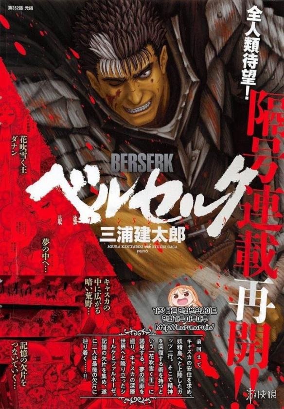 三浦建太郎在上回休刊时承诺读者,会在今年(2017)冬天重启连载(跟富奸如出一辙……),果真守信!《剑风传奇》漫画将于12月22日发售的漫画杂志《Young Animal》上恢复连载,为庆祝《剑风传奇》复刊,这一期杂志将刊出该漫画的卷头彩页。