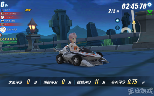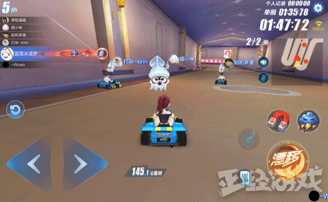 只有一根手指的玩家不妨试试游戏中的“组队道具”赛。在“组队道具”赛中,同队人员之间即使相隔万里也能互赠道具,你完全可以用你的一根手指来做一名淡泊名利的“辅助型”车手,人在亭台上,心系战场中,左手香蕉皮,右手烟雾弹。虽然我的车是卡在起跑线上的,但我的信念还是在终点前的。有人跑了两圈赢得胜利,我一步没动照样笑傲全场。场均助攻评分666,我就是队友们的百宝囊。