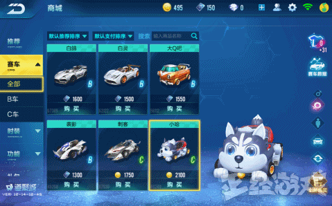 商城里的赛车名字都起的简单粗暴,让你一看就知道美工的灵感来自于哪里,比如创作霸天虎这款车的灵感毫无疑问来自于《变形金刚》,名车金刚狼前段锋利的“小爪子”则和凶猛的狼叔如出一辙,创作小哈的灵感……来自于狗?