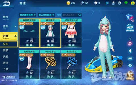 虽说这是赛车游戏,但游戏商城里堆的最多的,不是极品飞车,不是改装引擎,必须是时装啊!一三五我是小恐龙阿贡,二四六我是小草莓仙子,周日还能当一回舞法天女朵拉。