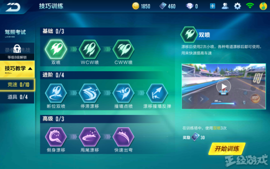 如果你自认为自己飙车技术过硬,配的上秋名山老司机的称号,那不妨来训练赛场,学习更多游戏中能使出的骚操作。CWW喷、撞墙点喷、漂移撞墙反弹……学会这些教程后,你就是藤原拓海。