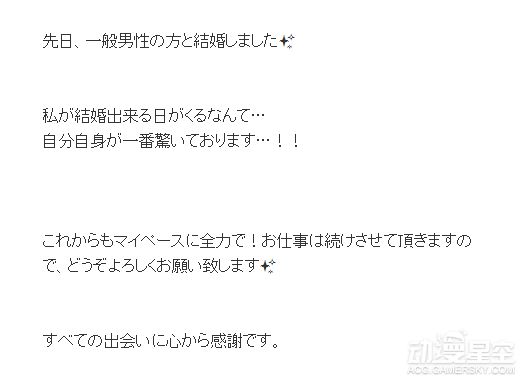 在下田麻美和小林优宣布结婚后,12月30日声优巽悠衣子也发布了自己的结婚喜讯。结合最近声优结婚的消息频出来看,难道大家都准备在年末扎堆脱单吗?