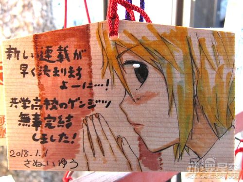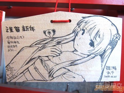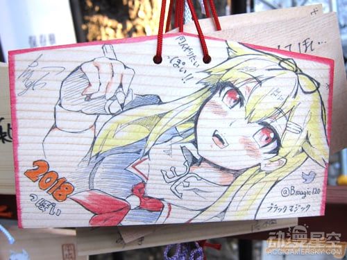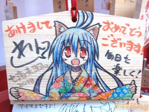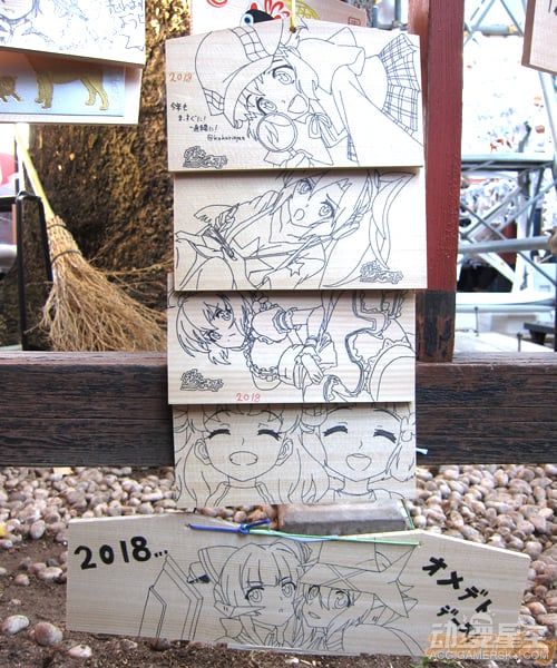 由于近年来动画行业的发展和观念的改变,绘马不再局限于仅靠文字抒发新年愿望,许多人会在绘马上画出各种动画人物,将这块小木牌作为展示自己绘画功力,吸引漫迷同好们的平台。而作为《Love Live!》的取材原型地之一,日本神田神社今年也展出了许多画师绘制的“痛绘马”,下面就让我们一起来欣赏吧!