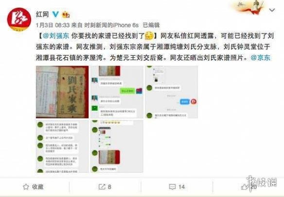 近日,京东创始人刘强东在网络上发布了一条寻祖公告,称解放前,刘氏家族祖籍系湖南湘潭,后来移居江苏宿迁。刘父吩咐东哥希望能够找回家族的族谱。而这件事进展如何?