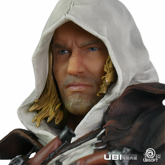 德华•肯维——《刺客信条》中最负盛名的刺客之一。1715年 ,海盗称霸加勒比并建立起来自己的法外之地。在这群亡命之徒中,有一个年轻气盛的船长爱德华.肯维。他的荣誉之战为他带来了像黑胡子那般传奇人物的尊重,但同时这也将他卷入了刺客们与圣殿骑士之间的古老纷争。这或许将终结海盗的黄金时代。该半身像由育碧典藏团队打造,精细的展现了爱德华的各种细节。