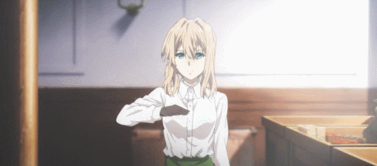 毕竟曾经身为军人,在来到将要寄宿的家中时薇尔莉特对房主直挺挺敬了个军礼,莫非她还在期待着会有什么“命令”传递给自己?最终,还未适应战后生活的薇尔莉特没有选择生活在别人家里,而是进入了霍金斯经营的公司。