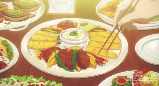 食物的刻画也非常精细,不过为什么用的是筷子……