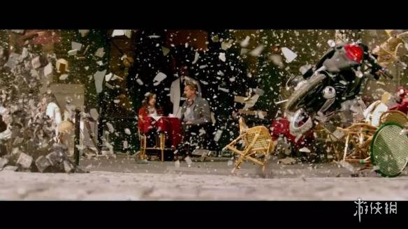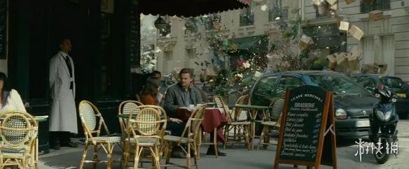 《盗梦空间》中咖啡馆外的爆炸场景。导演克里斯多弗·诺兰使用一组空气炮,在演员面前制造爆破,并用摄像机拍出慢动作!