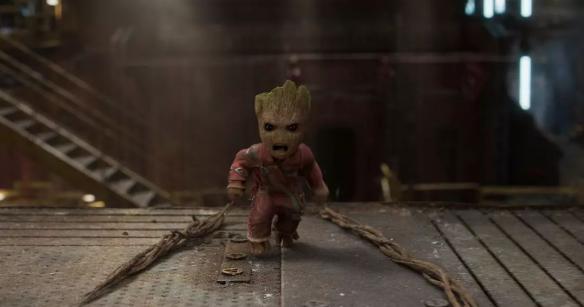 在原来的剧本并没有groot宝宝,时间线也定在几年后。为了让groot宝宝顺利出场,导演专门把时间线改到上一部事件发生的两三个月后,并为它加入了关键性戏份。groot宝宝的加入,不仅没有让剧情变得生硬反而制造了许多笑点和萌点。