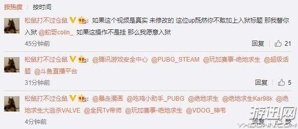 这一次的视频并不是松鼠本人上传,而是转发其他UP主上传的质疑镜头,但是在转发的微博评论中松鼠打不过仓鼠则表示,如果这个视频没有剪辑没有抽帧一切属实的话,蛇哥则应履行承诺“入狱”,如果这不是外挂,那么仓鼠自愿“入狱”。