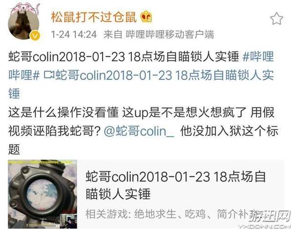 最近,实锤《绝地求生》主播开挂的风波似乎逐渐平息,但树欲静风不止,曾经因锤五五开吃鸡开挂而出名的B站UP主仓鼠再度出手,这一次锤的是曾通过各种途径自证的吃鸡主播“蛇哥colin”。