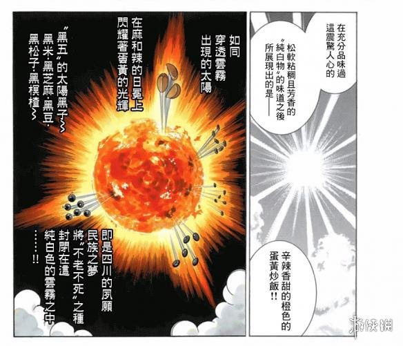 有了新想法的小当家立刻开始付诸实践,让老人来试吃。当他将新的蛋炒饭端上桌子的时候,大家都惊呆了,这是一盘白色的蛋炒饭!这盘白色的蛋炒饭上面的白色“云层”是用蛋清来炒制的,里面包裹着味道浓郁的红色川味炒饭,其中还点缀着五种黑色的美味配料。这款蛋炒饭的效果十分惊人,吃了之后感觉能让人升仙。
