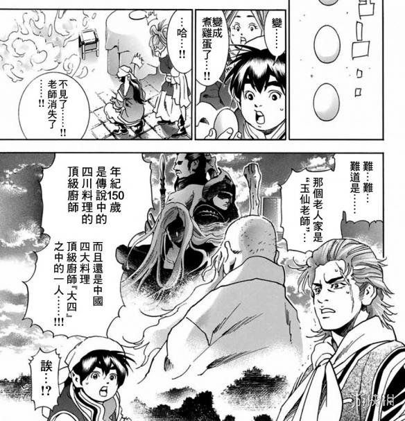 这个神秘的老人果然是传说中的“玉仙老师”,他的年纪已经超过150岁,而且他居然能直接在手上将一颗生鸡蛋直接弄熟。玉仙老师在离开的时候透露了一个大秘密:小当家的父亲玛柳还活着...