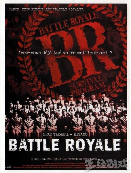 2000上映的电影《大逃杀》,讲诉的就是日本政府为了培养在逆境中坚忍不拔的青少年一代,每年都从全国学校随机抽出一个班级的同学,前往荒岛进行生存挑战。老师发给学生地图、粮食和各式武器,令他们自相残杀,直到存活下来的最后一个,才能离开荒岛。这种“大逃杀”模式就成了后来各种吃鸡游戏的玩法机制。