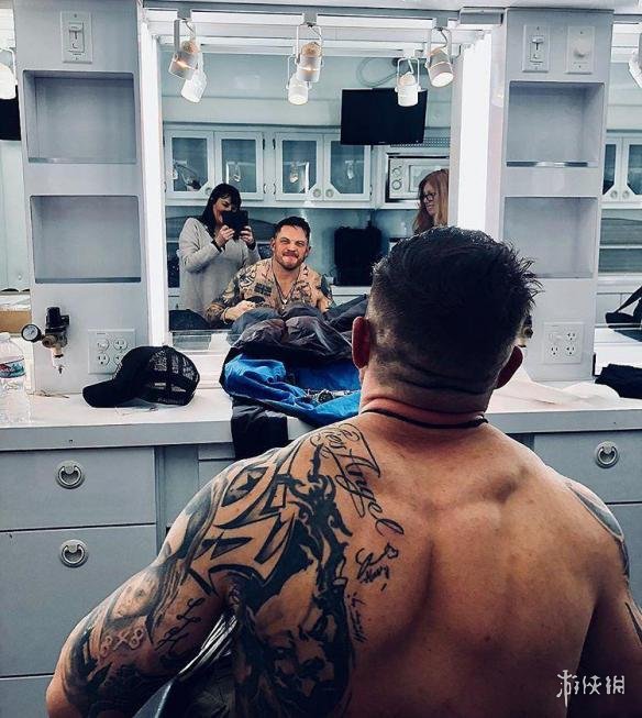 经过三个多月紧锣密鼓的拍摄,索尼的“蜘蛛侠”衍生片《毒液》今日杀青。影片主演汤姆·哈迪在个人社交媒体账号上发布了一张片场照,他在化妆室裸露上身,大秀虎(美)背,表情搞怪。
