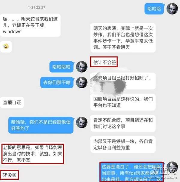 而在刚刚,具有大量电竞圈人脉关系微博大V午后狂睡,更是公布了近日来企鹅电竞相关工作人员与他的微信聊天记录的截图,大概的意思是,企鹅电竞官方表示,如果不能够打出之前在斗鱼的技术便不会签约蛇哥。