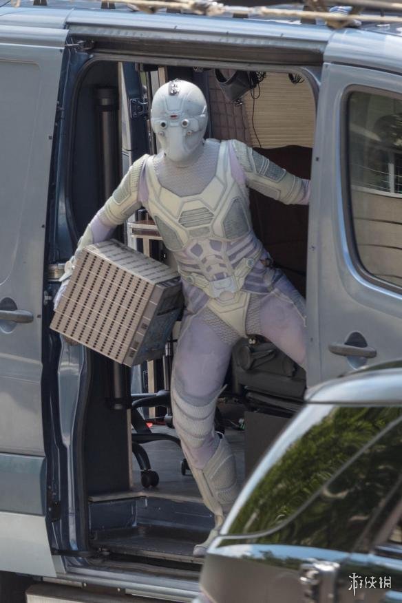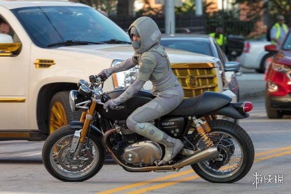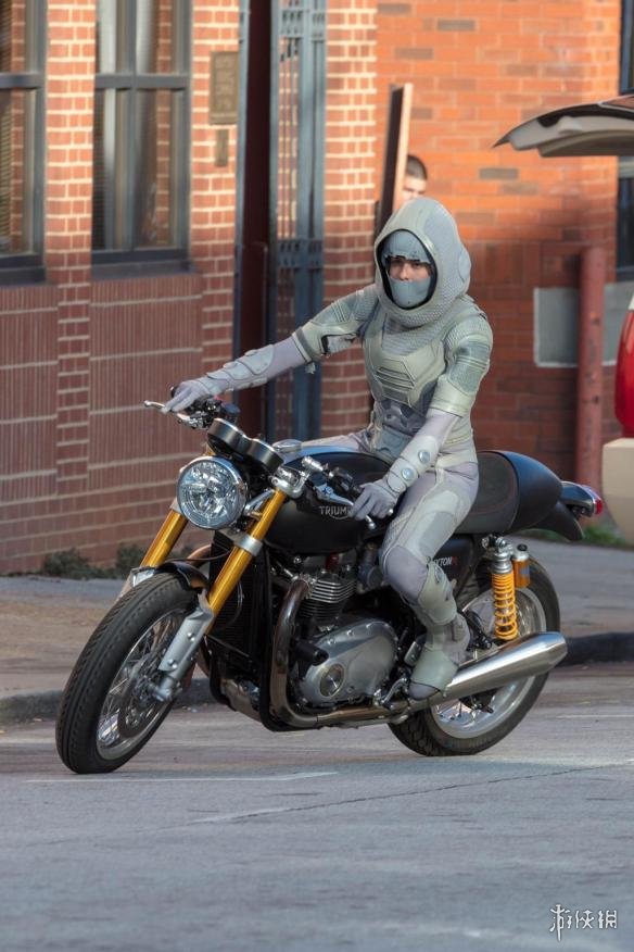 在这组照片中,“幽灵”骑着摩托车,疑似抢走了被皮姆博士(迈克尔·道格拉斯 饰)变小的大楼。“幽灵”这个反派在原版漫画中为男性,电影中改成女性,由汉娜·乔恩·卡门扮演。她痛恨一切大财团大企业,是个智商极高的黑客,也是顶尖的发明家,穿上自制战衣,能隐形、穿墙。