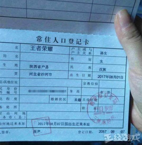 很多年轻爹妈在给孩子取名字的时候,不再拘泥于祥和美满的字眼,而是更加随心所欲,只要名字好听,霸气,就想怎么来怎么来。去年以为西安的父亲将自己刚刚出生的女儿起名“王者荣耀”同时还晒出了户口本照片作证。据报道,这位家长是《王者荣耀》的骨灰级玩家,对此姓名,孩子的母亲也并没有反对,而奶奶婆婆更是认为这是一个普通的名字,没什么不妥。