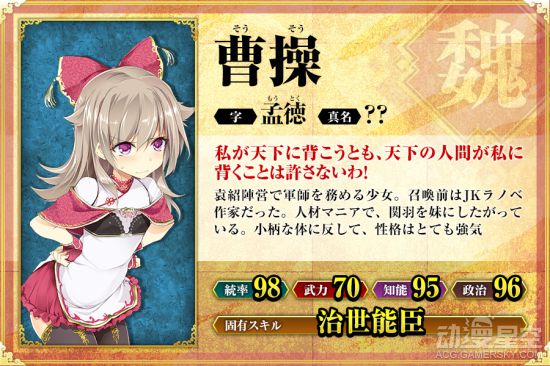 除了关羽、张飞外,这部小说中登场的其他三国武将基本也是女性,诸葛亮、曹操,孙策、孙坚、袁绍、吕布(北欧佣兵少女)。幸好董卓还是一名男性,不过感觉他就是让主角来显示能力的BOSS,感觉到了后面基本上三国全员武将都是刘备哥哥的后宫了。