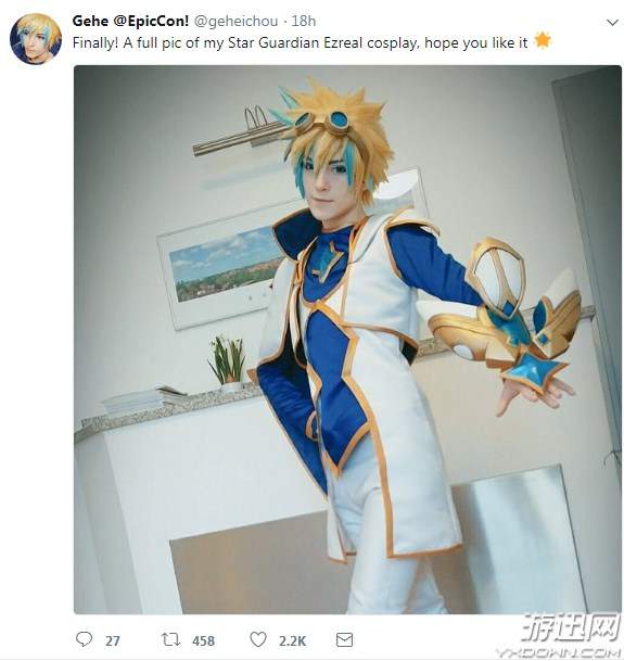 推特原文:终于!我完整的星之守护者伊泽瑞尔cosplay照发了,希望你们希望它。
