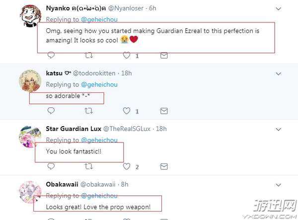 译文:我的天,你的星之守护者EZcos太完美了!看起来太酷了;太可爱了;ID为星之守护者拉克丝的网友评论:你看起来太棒了!!