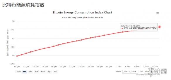 截至2月10日,比特币能源消耗指数的最新数据显示,比特币挖矿的年耗电量预计约为48.37太瓦时(TW,万亿瓦时),相当于全球耗电量的0.20%,且随着时间推移还在持续稳步增长。