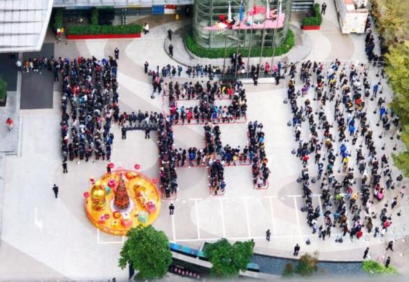 微博上已经有人晒出腾讯今年发红包的场面,今年腾讯的员工排成了“旺”字,可以看到不光是楼下,马路边上也在排队,真不知道这个队伍有多长……