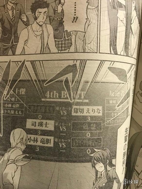 按照赛程,在接下来的比赛里剩余的参赛选手只有幸平创真、薙切绘里奈、司瑛士和小林龙胆,如果双方各持一胜的话那么还将继续加时进行第六局。但仙左卫门却对此表示否定,他认为下一局便是最终局,莫非老爷子已经预测到了胜利者是谁了吗?