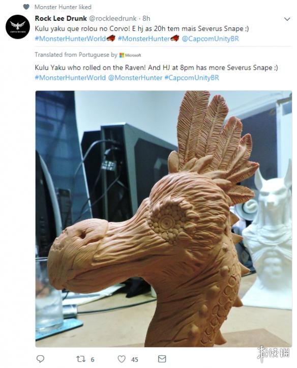 《怪物猎人世界(Monster Hunter World)》已在1月26日登陆PS4和Xbox One,PC版会在秋季发售。日前《怪物猎人世界》官方推特分享点赞了一名巴西玩家手工雕刻的搔鸟。