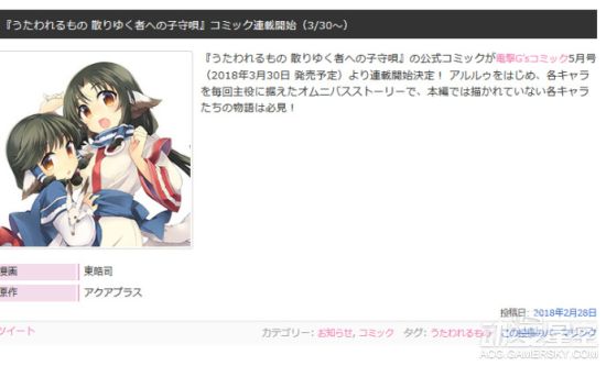 2018年01Aquaplus公布了游戏《传颂之物》的重制版《传颂之物:致逝者的摇篮曲》的全新预告,近日官方再次发声宣布《传颂之物:致逝者的摇篮曲》漫画版公布,将于3月30日开始连载。
